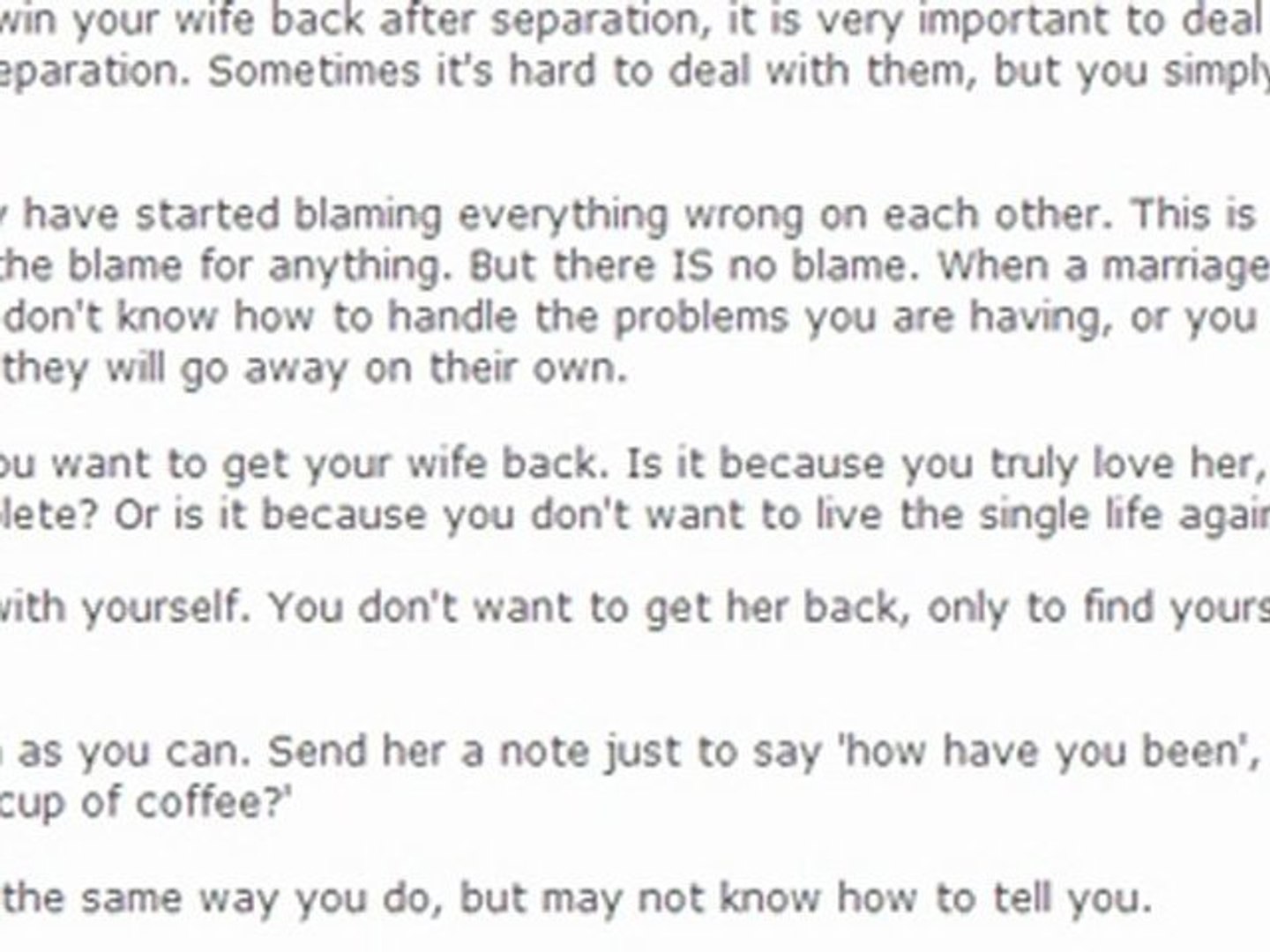 How to get your wife back after she leaves you. Check spelling or type a new query. We did not find results for: Maybe you would like to learn more about one of these?